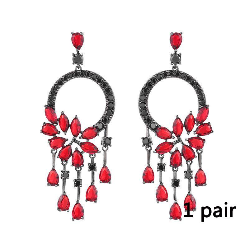 Серьги 2025 Тренд Темперамент Богемный Ретро Стиль Серьги Прилив Преувеличенная Атмосфера Тяжелая Промышленность Серьги Цветок Кисточка Капля Воды Серьги 1 pair красный