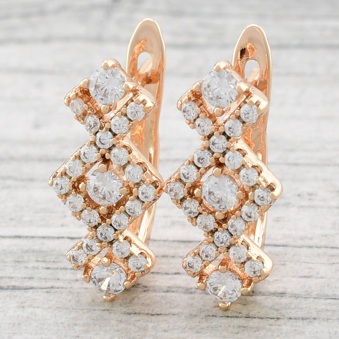 Серьги 24469 размер 17х7 мм белые фианиты вес 2.6 г позолота 18К