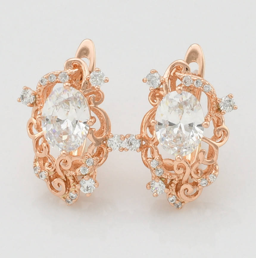 Серьги 25743 размер 18х12 мм белые фианиты вес 3.3 г позолота РО