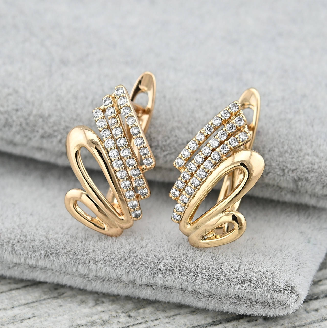 Серьги 35760 размер 15х10 мм белые фианиты вес 2.5 г позолота 18К