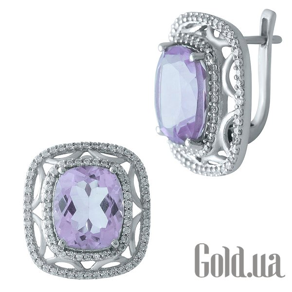 Серьги Fresh Jewelry, Серебряные серьги с аметистами и куб. циркониями