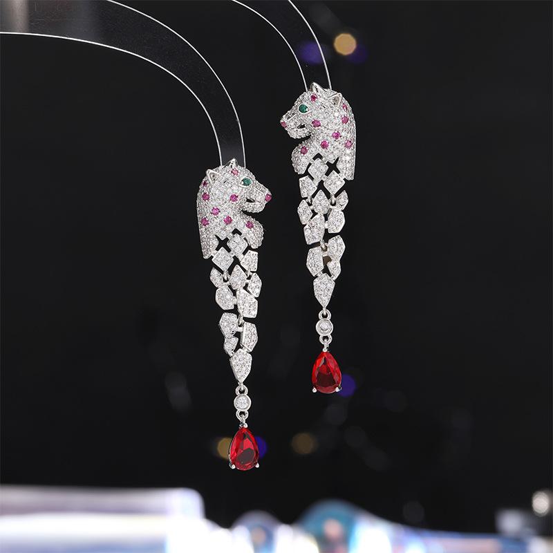 Серьги Heavy Industry Light Luxury с каплями воды Серьги с микроинкрустацией из циркония в виде головы леопарда Длинные кисточки Трехмерные серьги с пятнистым леопардом
