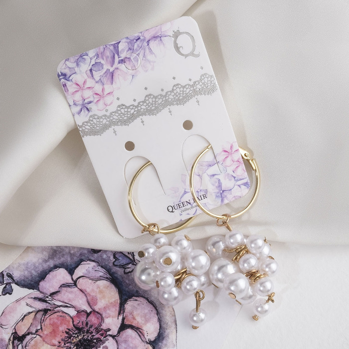Серьги Queen fair с жемчугом, Нежность, висячие бусины, белые, в золоте, d 2,5 см, с жемчугом, Нежность, висячие бусины, белые, в золоте, d 2,5 см