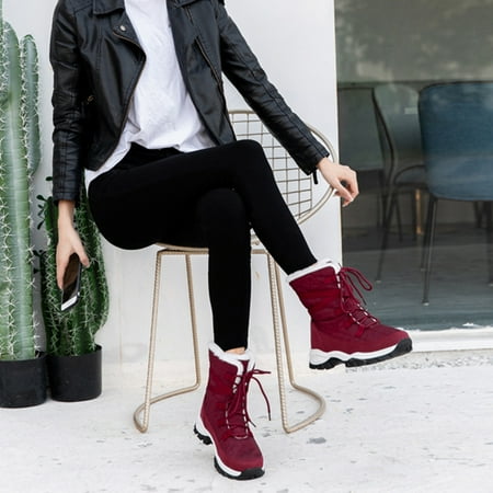 1 Pair Outdoor Winter Women Mid-Calf Anti-slip Lace-up Comfortable Snow Boots