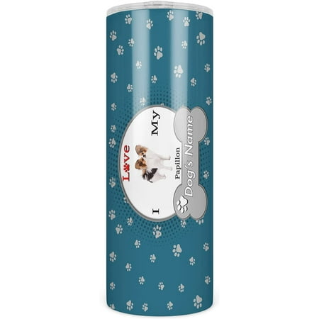 Athenstics Insulated Travel Skinny Tumbler Personalized Custom Name I Love My Dog Papillon 30oz Stainless Steel with Lid and Straw