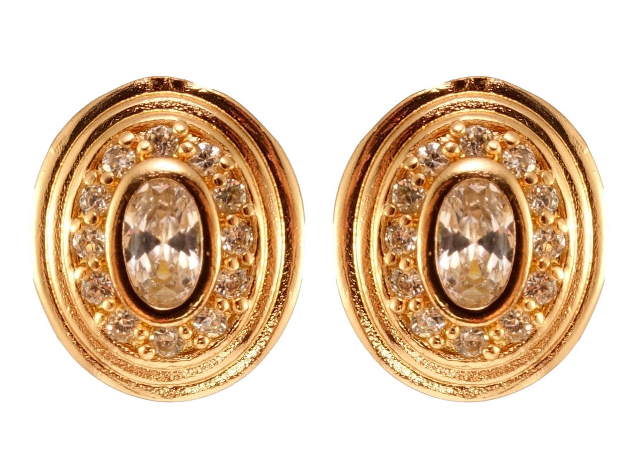 Серьги XP Позолота 18К гвоздики (пусеты) "Овалы с цирконием"