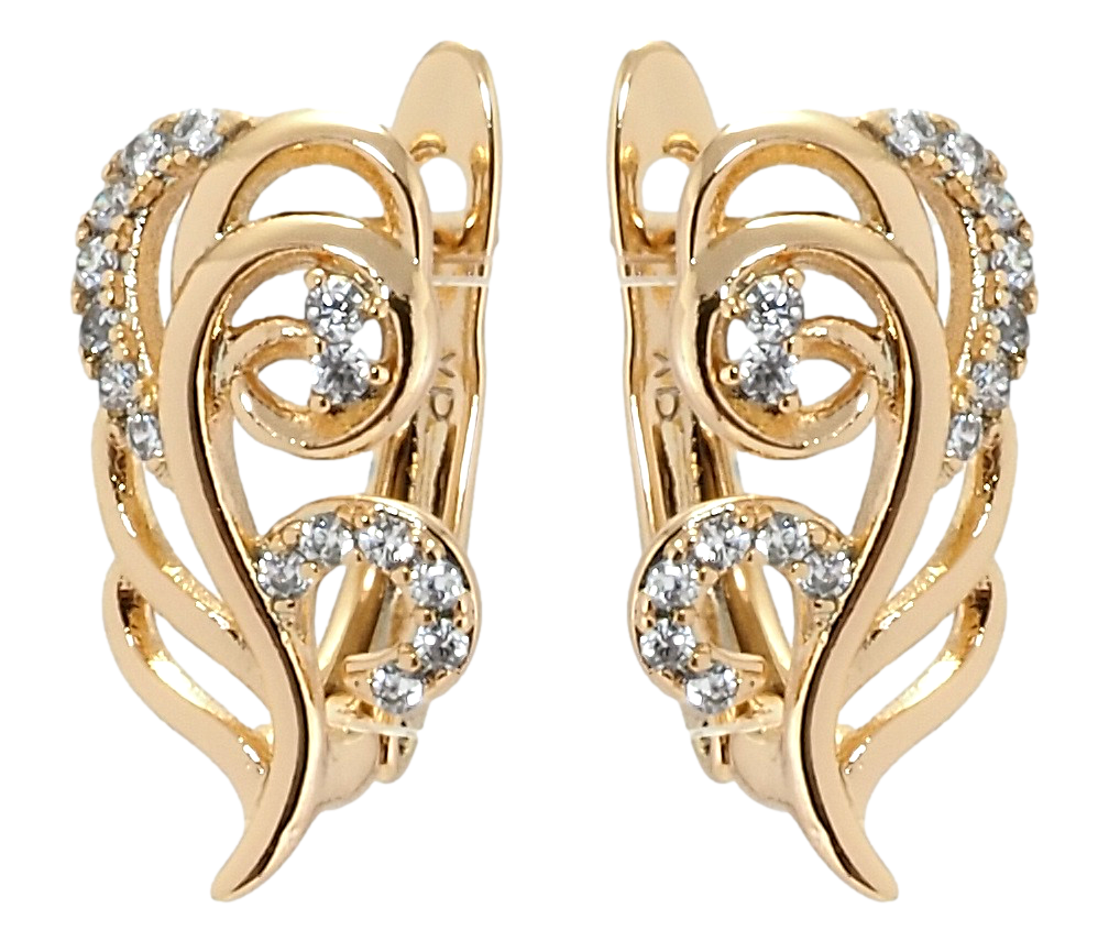 Серьги Xuping Позолота 18K английский замок "Перо с цирконием"