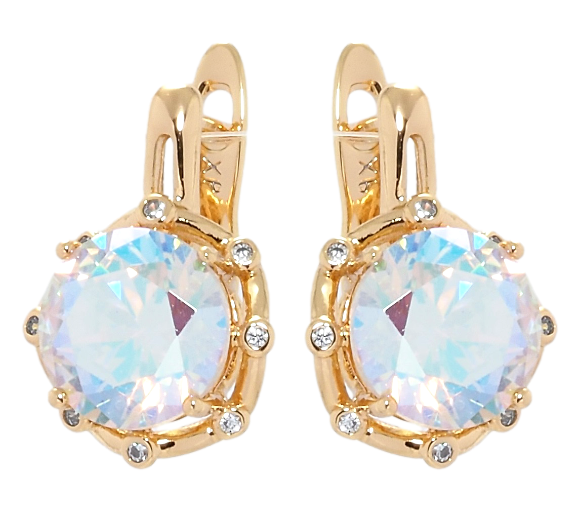 Серьги Xuping Позолота 18K английский замок "Радужные фианиты в оправе с цирконием"