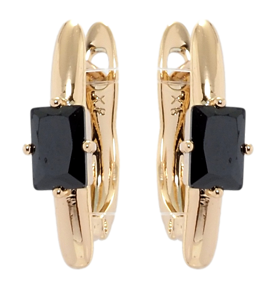 Серьги Xuping Позолота 18K английский замок "Черные фианиты"