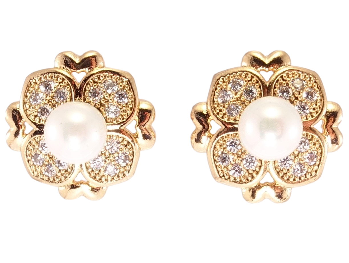 Серьги Xuping Позолота 18K гвоздики (пусеты) "Изящный цветок с жемчугом и цирконием"