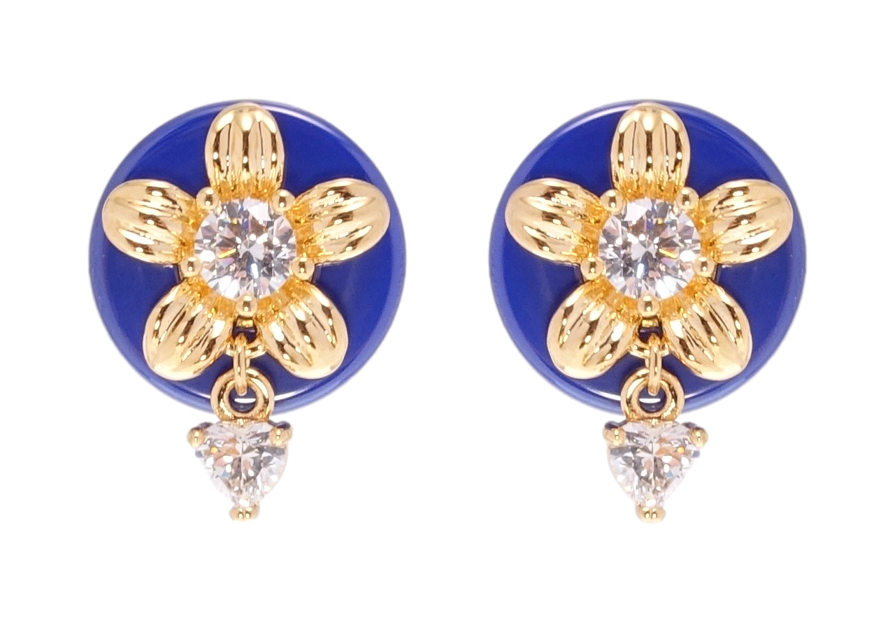 Серьги Xuping Позолота 18K гвоздики (пусеты) "Цветочки на синей керамике"