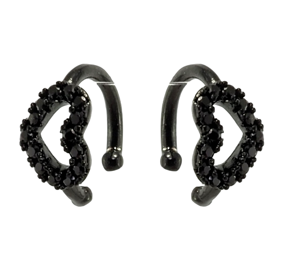 Серьги Xuping Позолота Black (черное золото) каффы "Сердечки с черным цирконием"