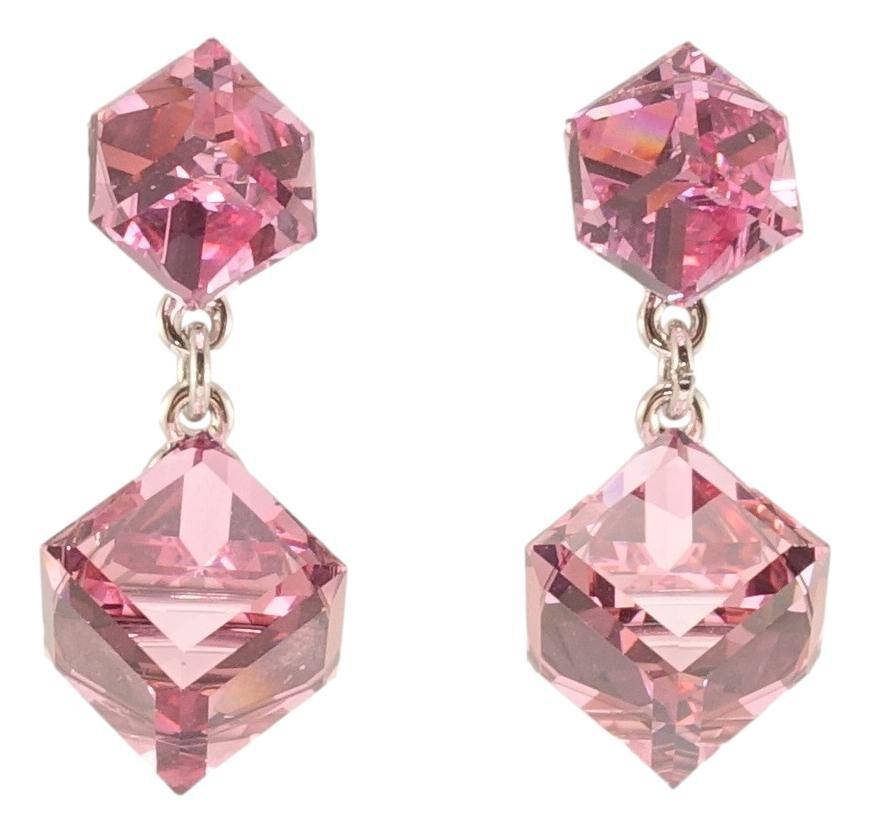 Серьги Xuping Родий с кр-ми Swarovski гвоздики (пусеты) "Кристальные кубики Rose" 6х6мм, 8х8мм