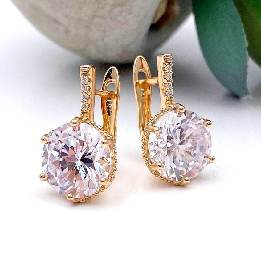 Серьги из медицинского золота с английской застежкой с крупным круглым цирконием.