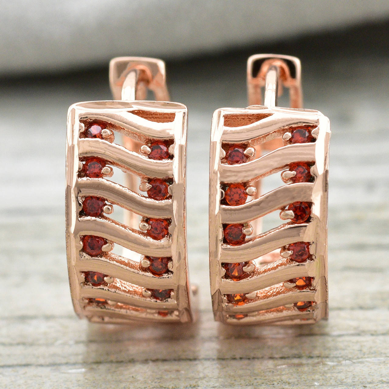 Серьги Xuping 23353РО размер 16х6 мм красные фианиты вес 2.9 г позолота РО