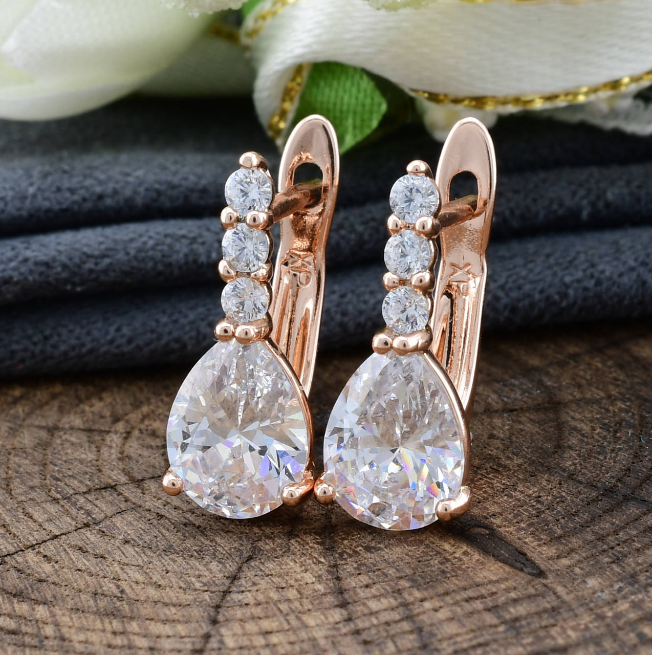 Серьги Xuping 24610 размер 15х6 мм белые фианиты вес 2.3 г позолота РО