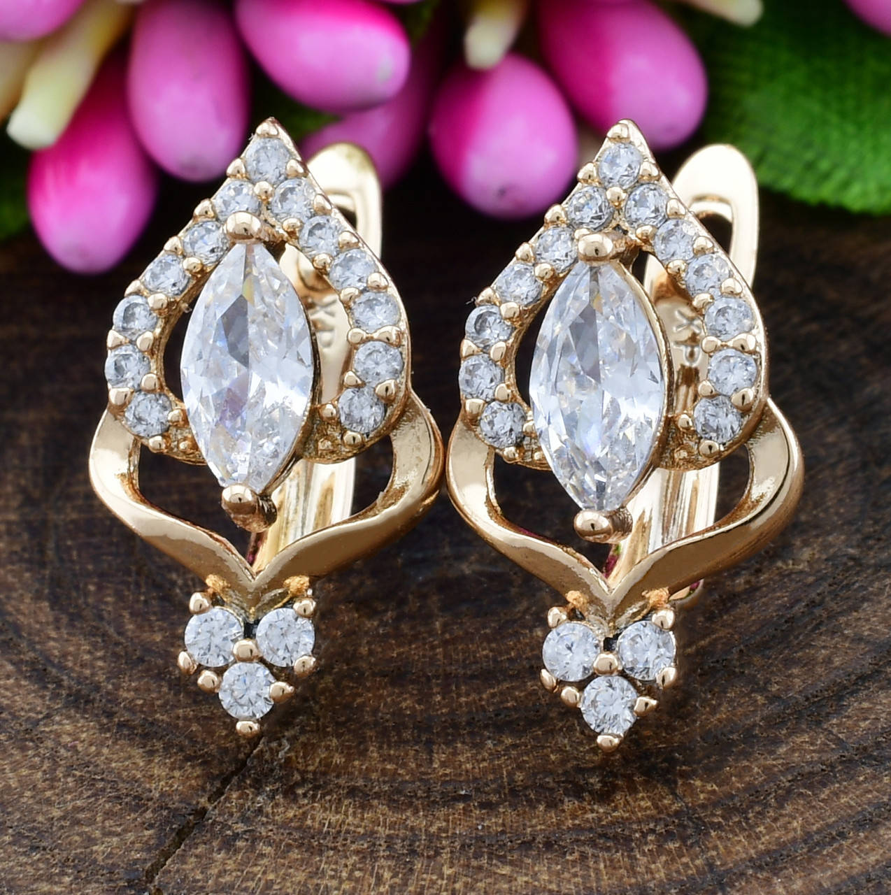 Серьги Xuping 27242 размер 17х9 мм вес 2 г белые фианиты позолота 18К
