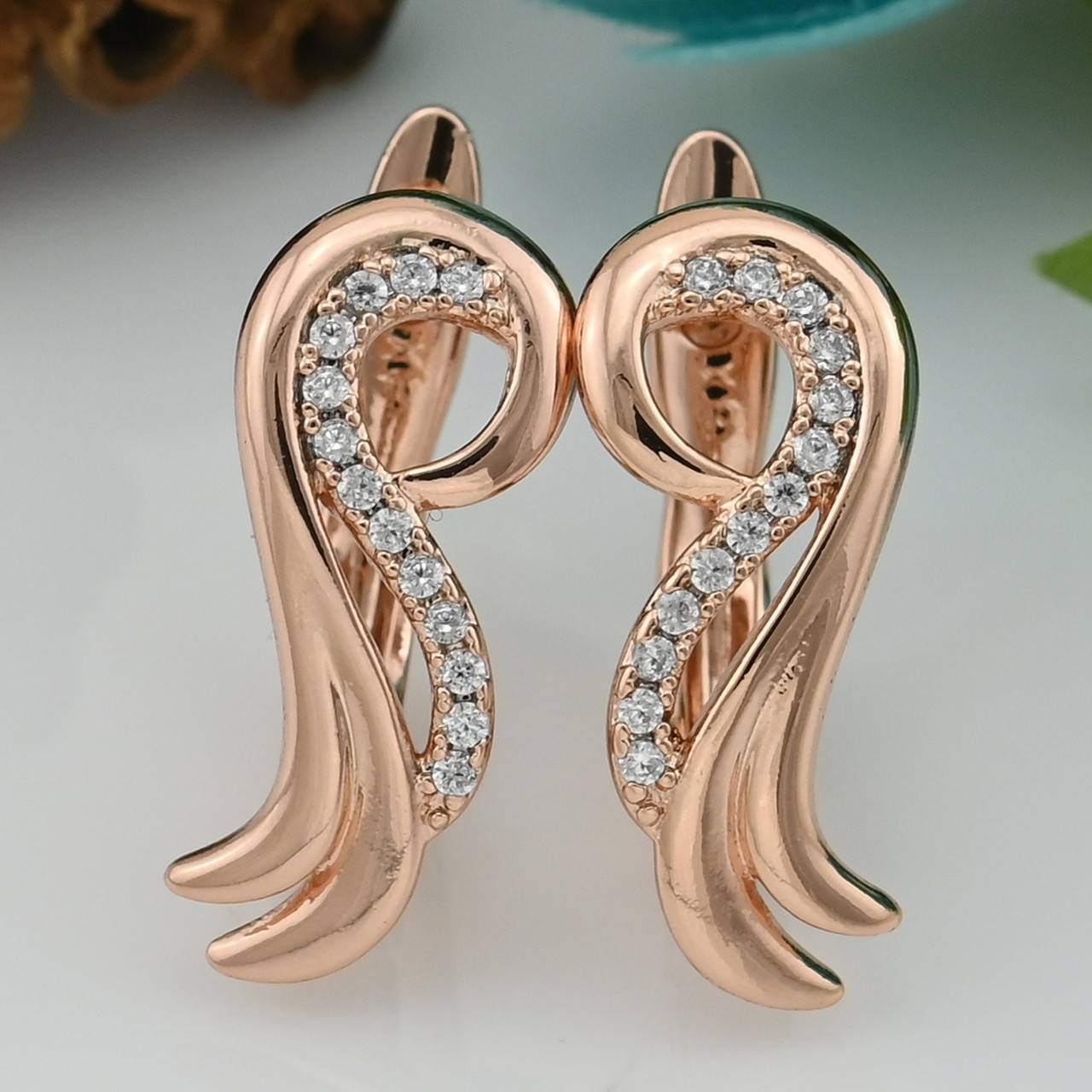 Серьги Xuping 31067 размер 18х8 мм вес 2.3 г белые фианиты позолота РО