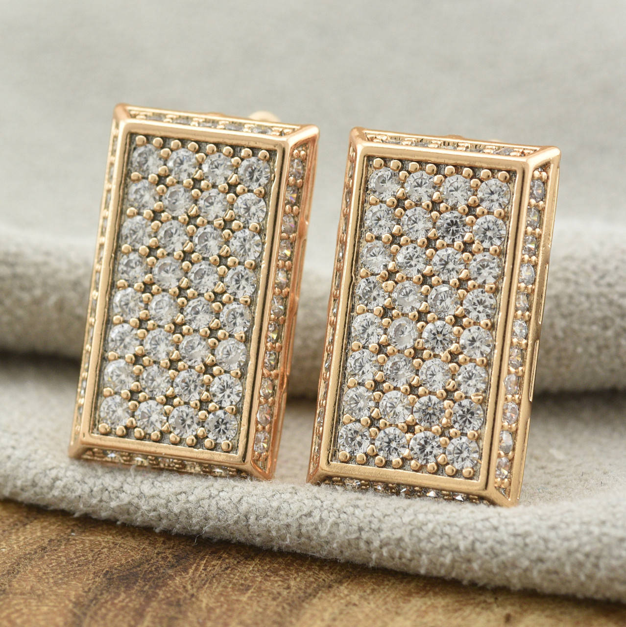 Серьги Xuping 35133 размер 17х10 мм белые фианиты вес 4.2 г позолота 18К