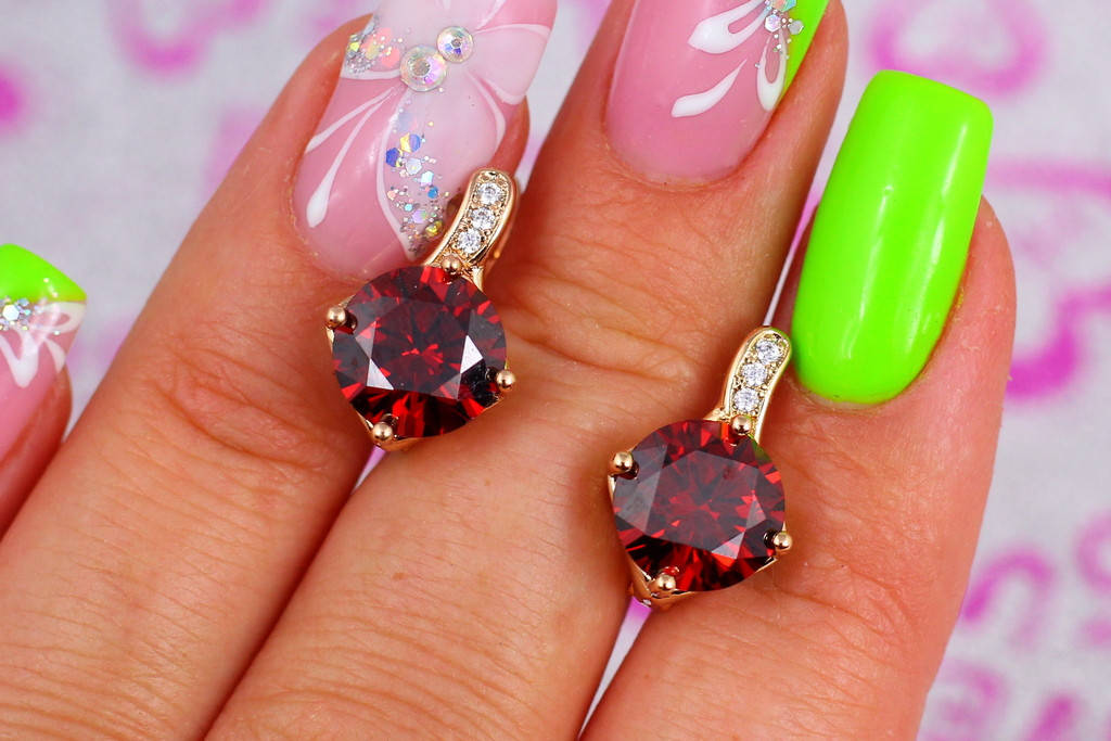 Серьги Xuping Jewelry с красными камнями 1,5 см золотистые