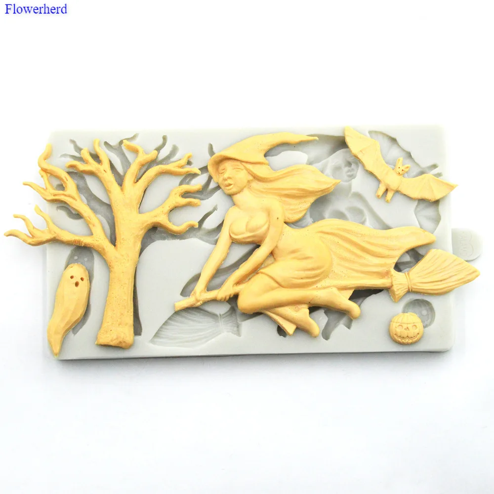 Новый Хэллоуин торт Decoratinig Инструменты для выпечки ведьма призрачная летучая мышь Тыква силиконовые формы Fondant (сахарная) форма для выпечки ...