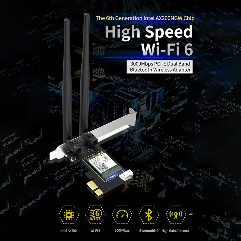 -Сетевая карта AX200SE, Двухчастотная игровая Wi-Fi карта 6, адаптер Wi-Fi, Bluetooth сетевая карта, подходит для компьютеров