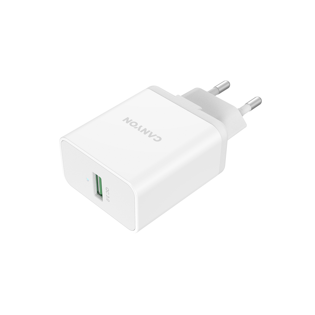 Сетевое зарядное устройство Canyon H-12 18W, 1USB, Quick Charge, 3A, белый (CNE-CHA12W), H-12