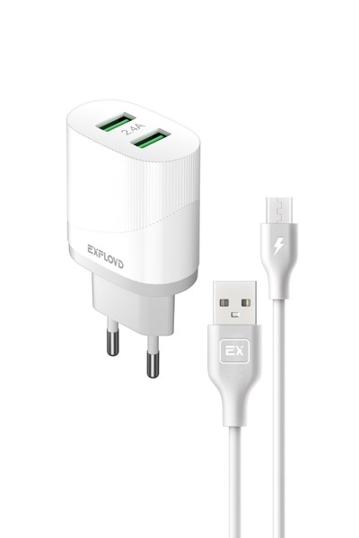 Сетевое зарядное устройство Exployd Easy EX-Z-1437 5Вт, 2xUSB, 2.4A, белый (EX-Z-1437), micro USB, EX-Z-1437