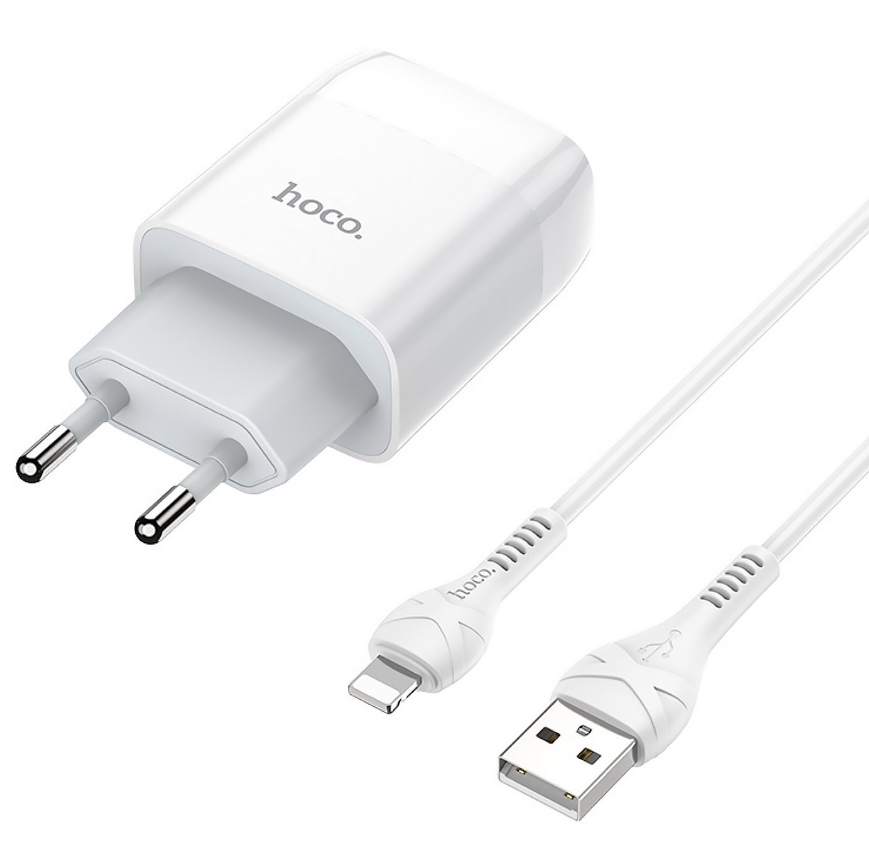 Сетевое зарядное устройство Hoco C72A Glorious 10W, 1USB, 2.1A, белый, кабель Lightning, C72A Glorious