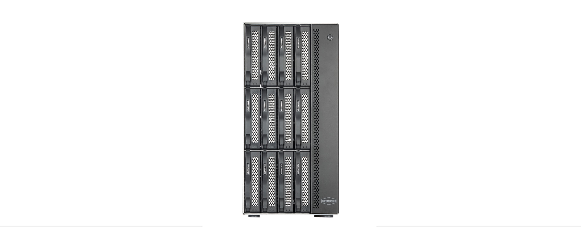 Сетевой накопитель (NAS) TerraMaster T12-423, слоты 12x2.5"/3.5" SATA3, RAID 0/1/5/6/10/Single/JBOD, 1xM.2-SATA, 2x2.5Гбит/c, HDMI, 2xUSB 3.X, Intel Celeron N5105/5095/4x2GHz, 8Gb, 500W, (T12-423), T12-423