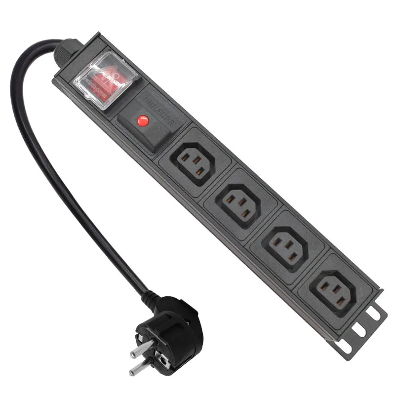 Сетевой стеллаж PDU, удлинитель из алюминиевого сплава, 4 выхода C13 с защитой от перегрузки, 2 м