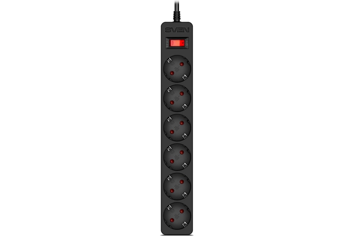 Сетевой фильтр SVEN SF-06E, 6-розеток, 5 м, черный (SV-022068), SF-06E