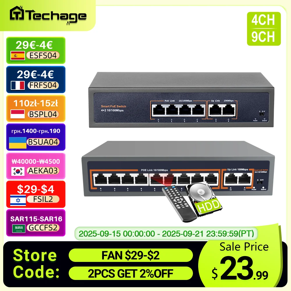 Techage 4CH 8CH 16CH 52V Сетевой коммутатор POE с IP-камерой 10/100 Мбит/с IEEE 802.3 af/at через Ethernet/беспроводной точка доступа/камерой видеонаблюдения