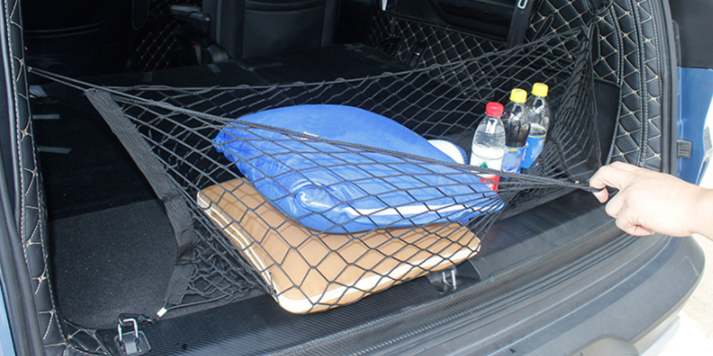 Сетка придавливает сверху вещи, тем самым не давая им самостоятельно перемещаться по багажнику во время движения автомобиля, либо ее можно закрепить на стенке багажника и использовать как органайзер-карман.