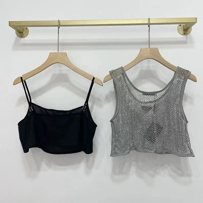 Сетчатый ажурный Топ без бретелек с высокой талией и блестками, небольшая майка, Новинка лета 2023
