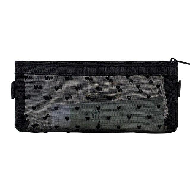 Сетчатый пенал, косметичка, косметичка, прозрачный многофункциональный органайзер, папка на молнии, черный пенал с сердечком, сумка для хранения