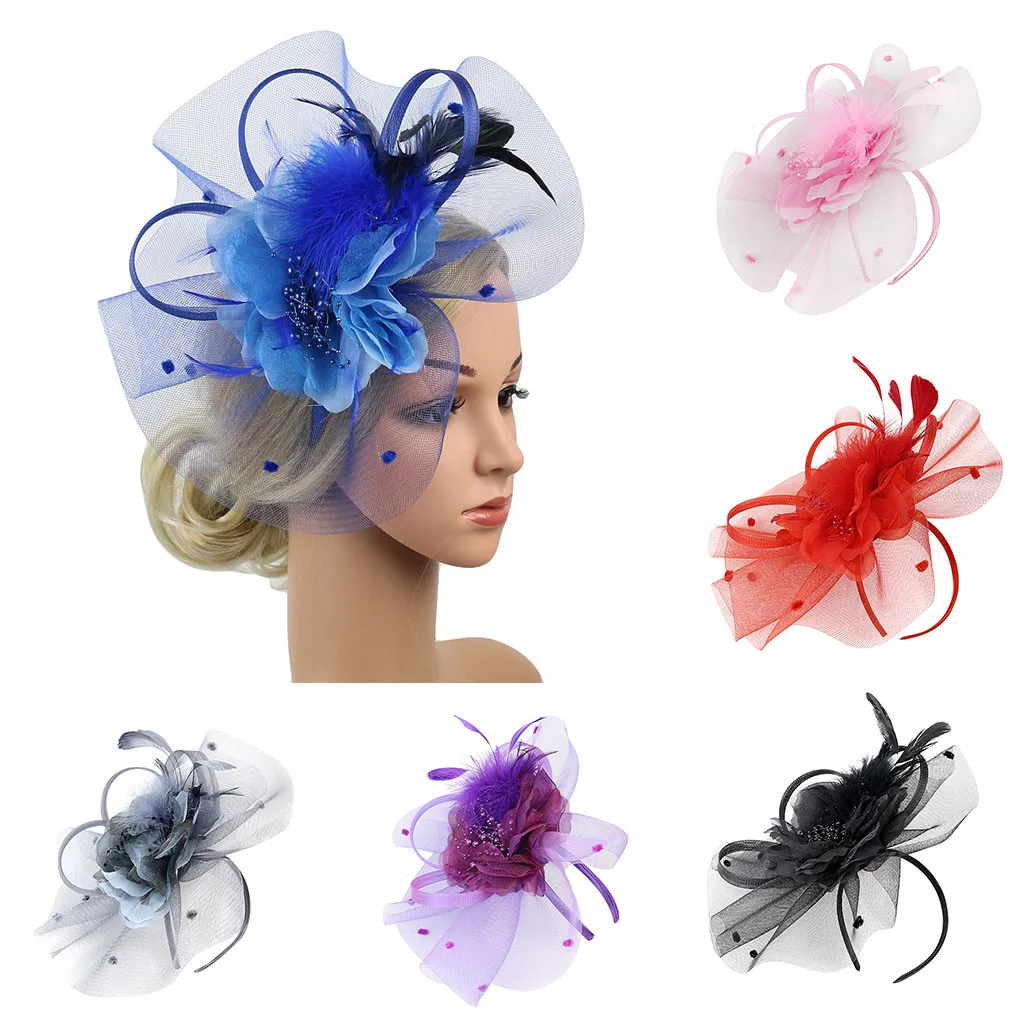 Сетчатый, с перьями головной убор для волос с цветком, ручная работа, женские заколки для волос, перышки для свадьбы, Повседневные Головные уборы, вечерние, элегантные
