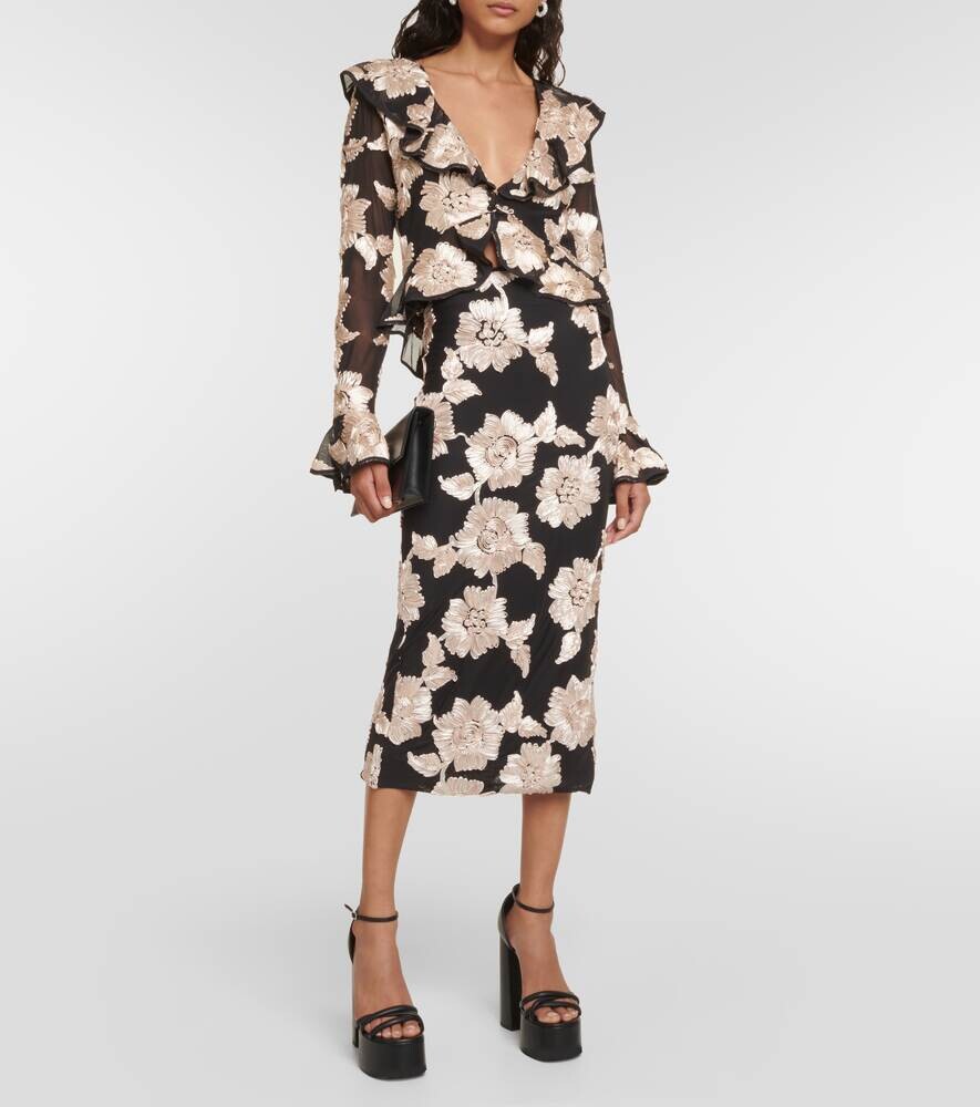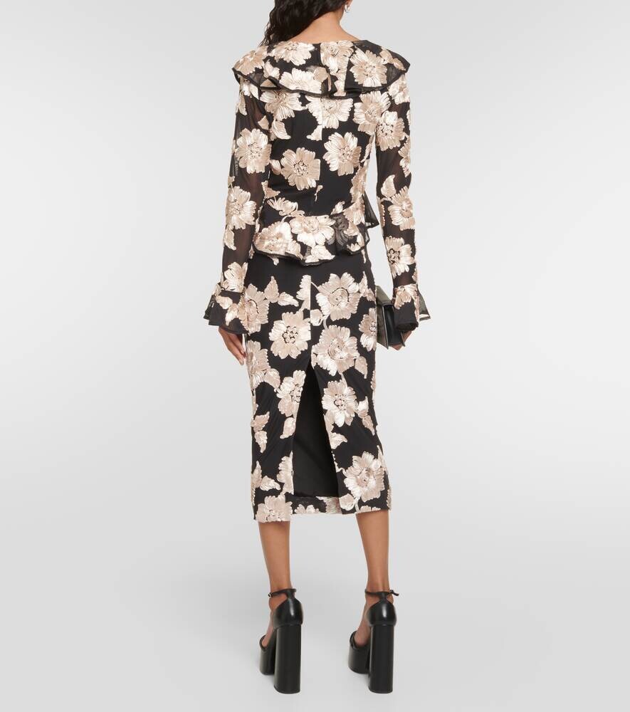 Сетчатый топ с оборками и цветочным принтом ROTATE BIRGER CHRISTENSEN, разноцветный