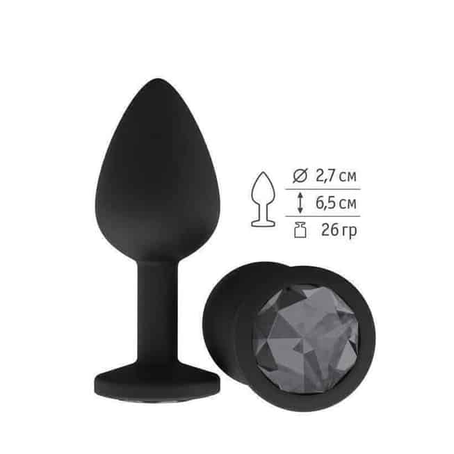 Маленькая силиконовая анальная пробка с наконечником каплевидной формы и круглым чёрным стразом на круглом ограничительном основании