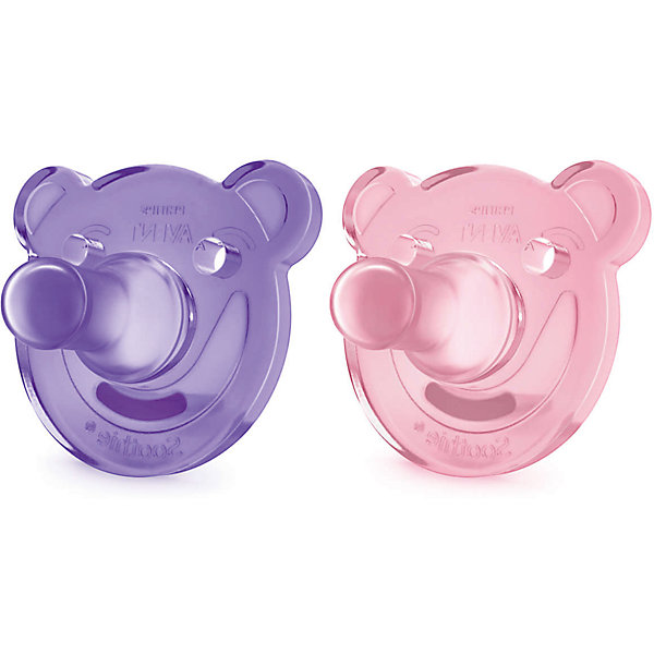 Силиконовая пустышка Philips Avent Soothie Shapes 0-3 мес, 2 шт, розовый/фиолетовый