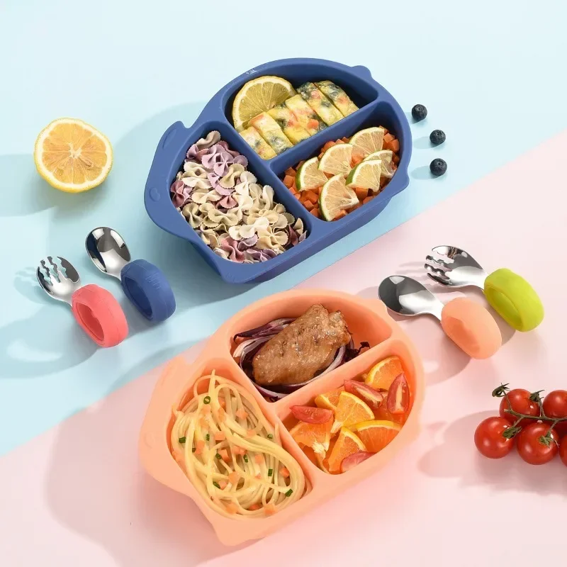Силиконовая тарелка разделитель кролик с присоской детская столовая посуда
