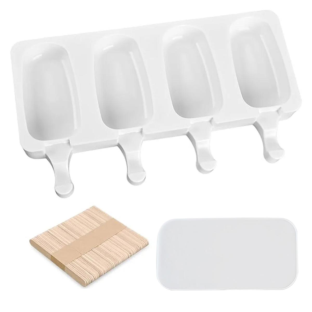 Силиконовая форма для мороженого со 100 деревянными палочками, домашняя форма для мороженого, не содержащая BPA, детская форма для мороженого, многоразовая белый