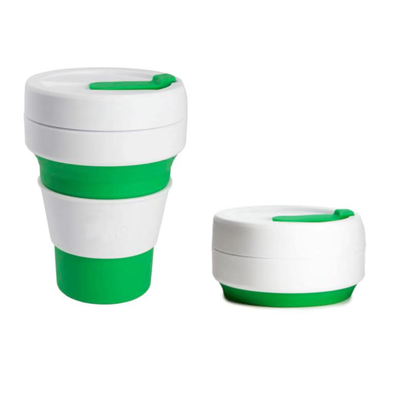 Силиконовая чашка для кофе Силиконовая складная чашка для воды Карманная чашка Складная выдвижная бутылка для воды Чашка для воды Портативная дорожная сумка 355ml1PCS зелёный
