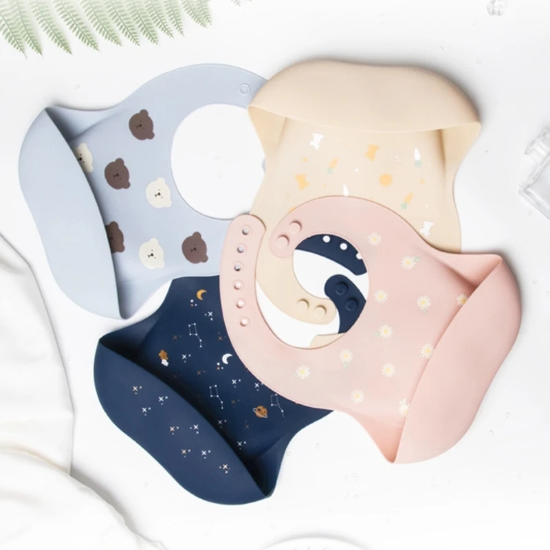 Силиконовые детские нагрудники для малышей, мягкие регулируемые водонепроницаемые нагрудники унисекс для кормления с карманом для Ловца еды