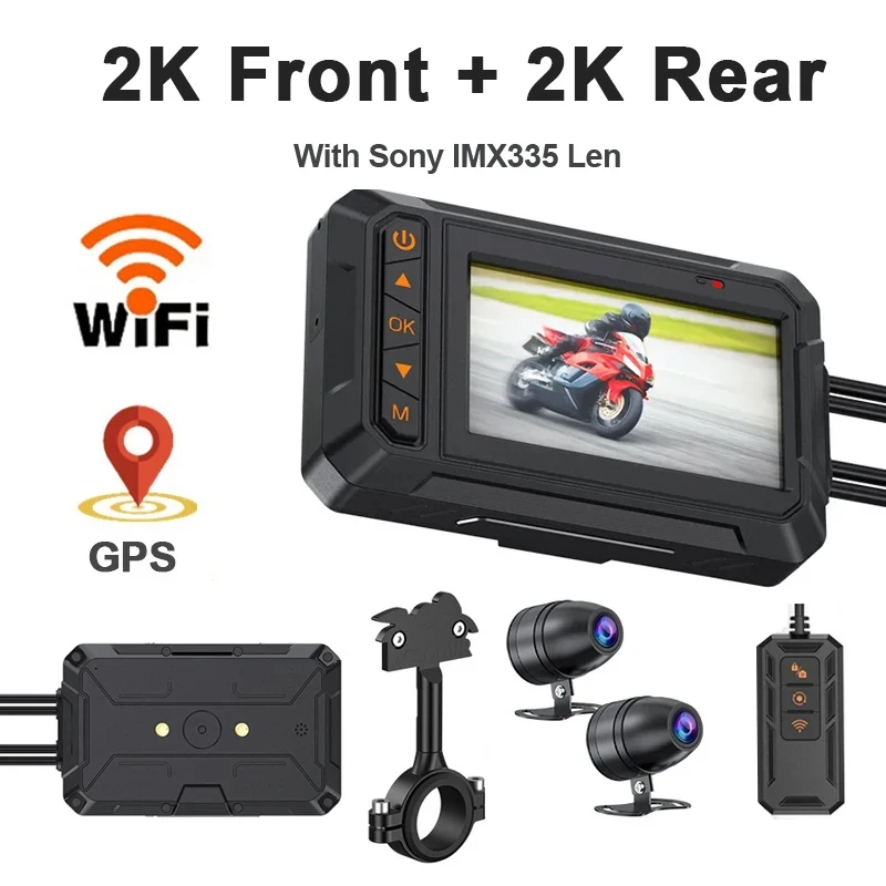 UHD 2K Motorcycle DVR Dash Cam WIFI GPS Front Rear View Camera Waterproof Dual Lens Driving Recorder With Sony IMX335