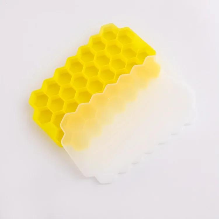 Силиконовые формы для кубиков льда с крышками, большая квадратная форма для кубиков льда на 148 кубиков, большой емкости, льдогенератор пищевого класса 1PCS-37Cube жёлтый