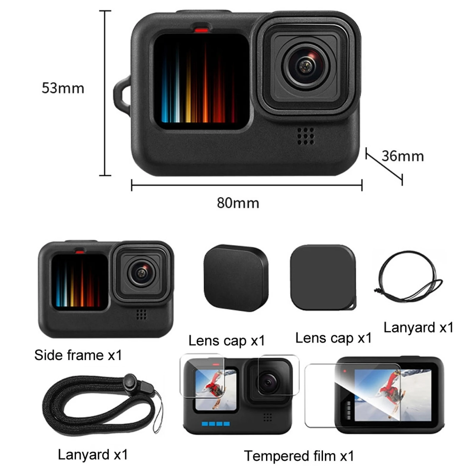 Силиконовый защитный чехол + закаленное стекло для GoPro HERO9 Black / HERO10 Black