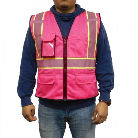 3C Products ANSI/ISEA 107-2015 Class 2 Safety Pink Ultra Soft Mesh Surveyor Safety Vest w/ Multi-Pockets Mic Tabs and Pen Holder - SV2570-M