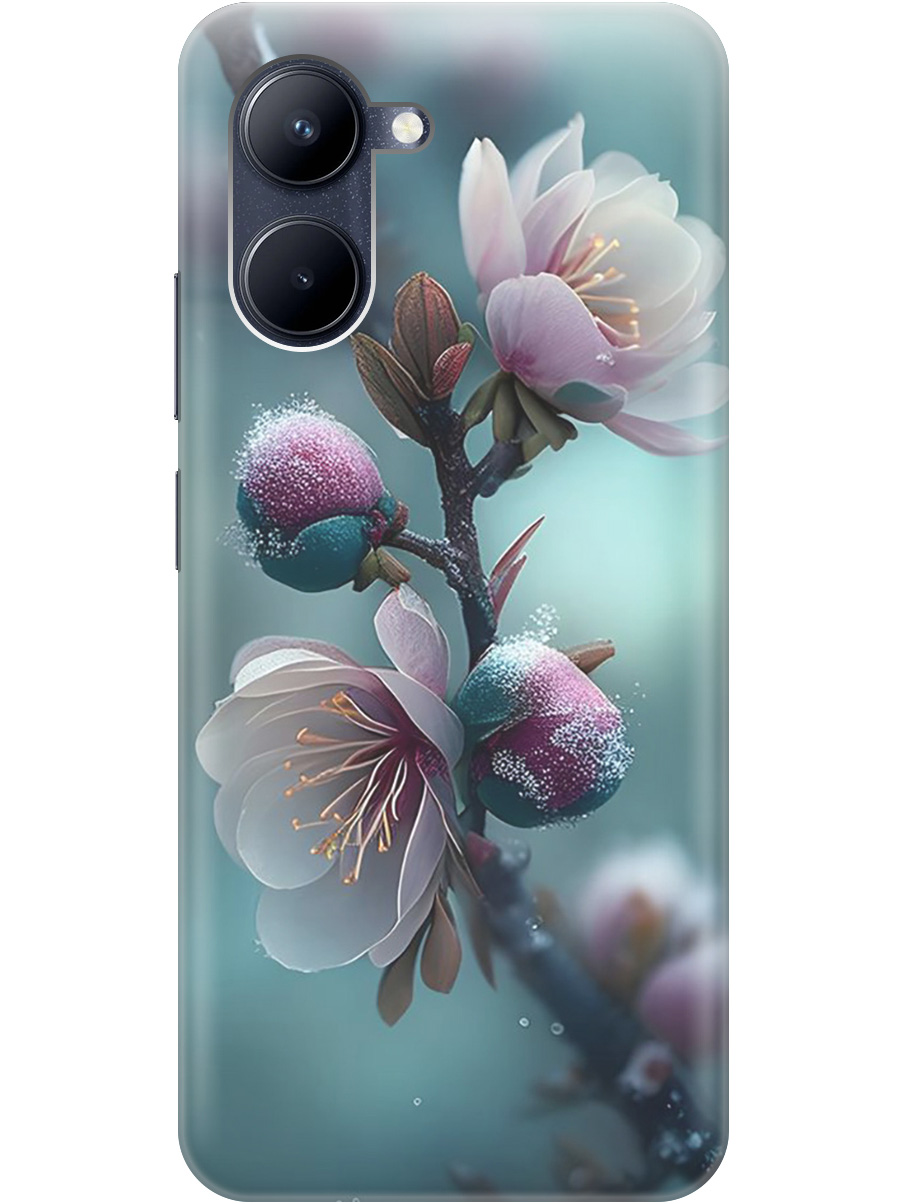 Силиконовый чехол на realme C33 с рисунком "Распускающиеся бутоны", Белый;голубой, 20000858