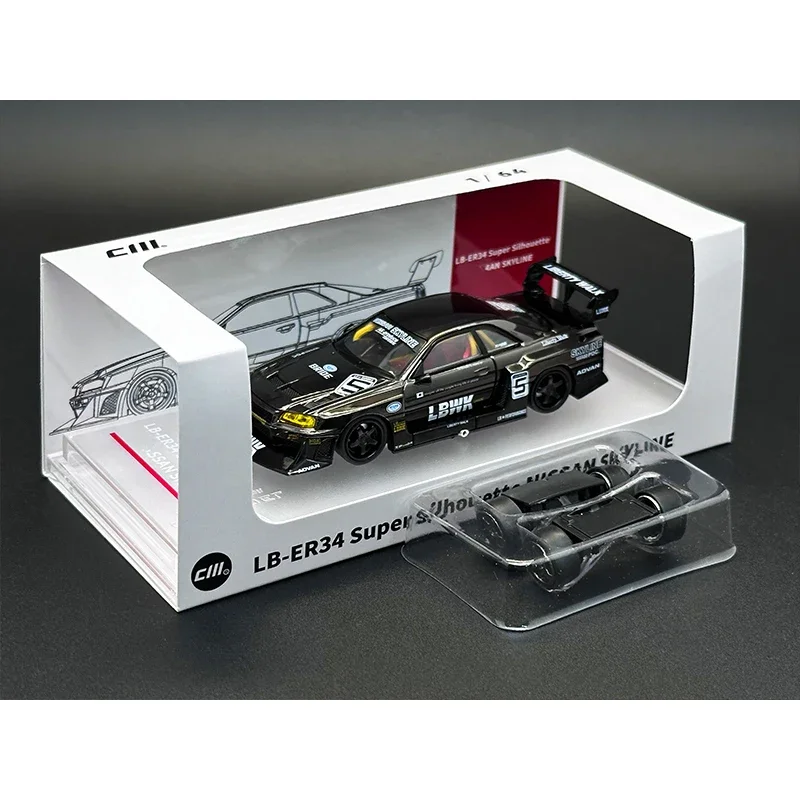 Силуэт LBWK Skyline ER34 см 1:64, хромированные сменные колеса, литые, модели автомобилей, коллекция женских автомобилей